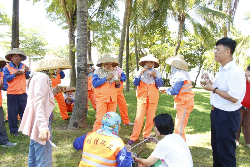在鳳凰路一中路段、海虹廣場(chǎng)等地,正在清掃保潔作業(yè)的員工們頂著烈日,堅(jiān)守一線,為城市的干凈整潔不停歇地忙碌著。工會(huì)主席高斐斐表示,在這么炎熱的天氣下,員工們依舊堅(jiān)守在城市的大街小巷揮灑著汗水,十分辛苦。她叮囑員工們?cè)诒WC工作質(zhì)量的同時(shí),要科學(xué)調(diào)整作息時(shí)間,合理安排勞動(dòng)生產(chǎn),確保在高溫天氣下作業(yè)安全。勉勵(lì)大家繼續(xù)發(fā)揚(yáng)明佳精神,為創(chuàng)造更加整潔、舒適、優(yōu)美的城市人居環(huán)境和“創(chuàng)文鞏衛(wèi)”工作作出更大貢獻(xiàn)。