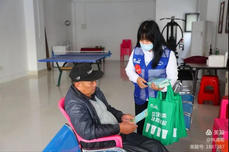 吉陽環(huán)衛(wèi)垃圾分類督導(dǎo)員與社區(qū)工作人員對居民分發(fā)垃圾分類手冊
